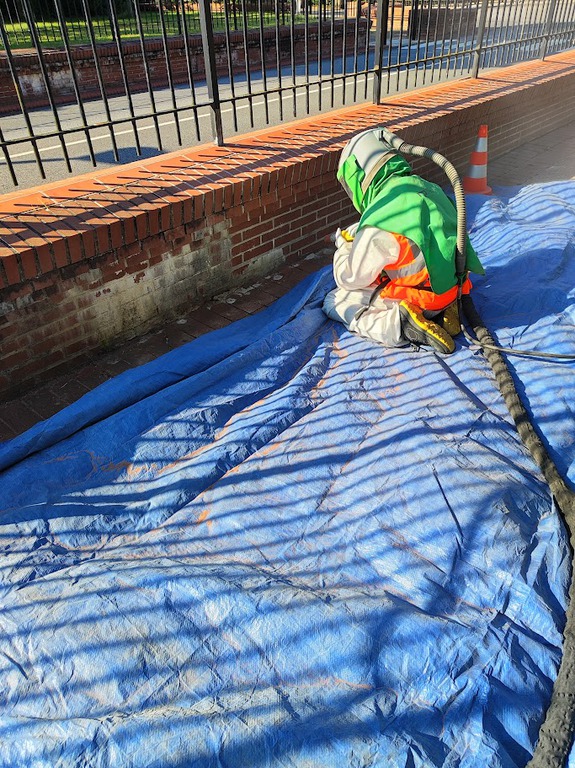 Le tout est mis en dépressurisation en bout de lance, nous obtenons un effet abrasif combinant l’air et le granulat ; nous réalisons ainsi un Décapage à sec, sans produit chimique, sans eau, sans électricité pour tous types de supports, qu’ils soient tendre ou très dur.